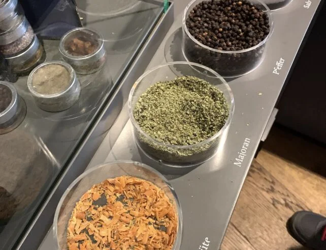 The first place we visited was Bratwursthäusle bei St. Sebald, while the second one was very close to our hotel and it was Bratwurstglöcklein im Handwerkerhof. Both rooms looked the same inside. Attention from the very entrance was drawn by the fire on which the sausages were prepared. The menu in both restaurants, as I wrote a moment ago, was not long. Of course, apart from the dishes, it also included local beer and wine.